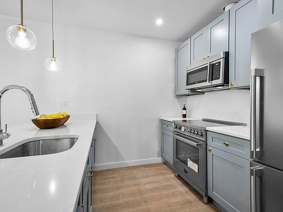 This is an end unit! 139 on Fifth is Pelham's newest luxury apartment building in the heart of downtown! Just two blocks from the train station and steps to all shops, restaurants, and salons, you can be the first one to live in this sunny one-bedroom facing east. Enjoy open-plan living with 8' ceilings which is perfect for today's lifestyle. The living room bay windows let the sunshine in and the kitchen layout is perfect for both chefs and for diners. The extra roomy bathroom boasts a huge step-in shower. The bedroom offers a large double closet. You will love the convenience of a full-size washer and dryer in every unit and 4 closets including a giant multi-purpose closet near the entry hall. This amenity-rich building offers an elevator, a pet spa, security, a package room, tenant storage, and assigned private parking immediately behind the building. There is also a top-floor lounge, and a rooftop deck to enjoy the sunsets. Stream and work easily with Verizon which is already prewired. Welcome to 139 FIFTH. Published rent reflects 1 month free on a 13 month lease.