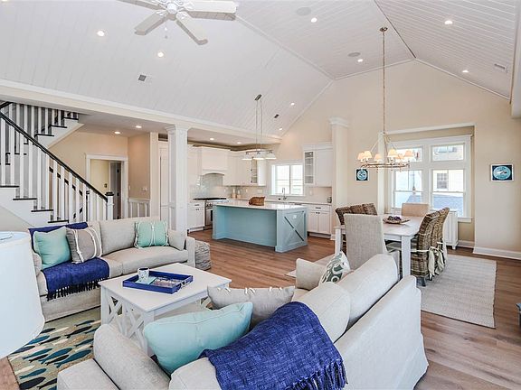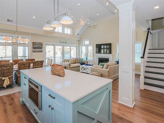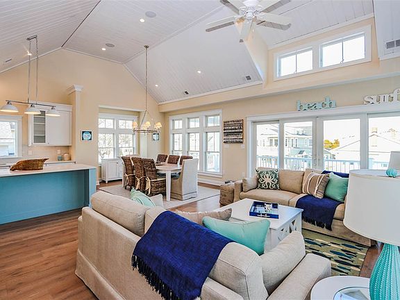 BRAND NEW CUSTOM HOME WITH OCEAN VIEWS completed at the end of 2017! SOLD WITH A PROFESSIONALLY DECORATED INTERIOR. This ideal Park-n-walk location is just 7th from the beach & only a short stroll from tennis & basketball courts, a playground & town! Creatively designed by Blaine Steinman Architects, this is another First Class home by Ryan Development Group, which is known for crafting a Distinctive, Tastefully Appointed home with a Thoughtfully Crafted, Inviting floor plan! Highlights include: ocean views from Front & Rear Decks, dramatic 10 foot high 1st floor ceilings and 8 ½ and 9 foot high ceilings on the 2nd floor, 5 bedrooms (3 of which have their own private bathroom), 4 full bathrooms, a Powder Room, a spacious Family Room with attractive coffered ceiling & built-in cabinetry, wet bar & beverage fridge, an impressive cathedral ceiling above the Living/Kitchen/Dining Areas, a gas fireplace, 5 large decks (for your choice of sun or shade) including a fantastic, southern-exposed 13'x18' rooftop sun deck with ocean views, refreshing breezes & adjacent wet bar & beverage fridge!Additional INTERIOR highlights include: extra wide (7 1/4 inch) oak hardwood flooring, an upgraded trim package w/wainscoting & accent walls throughout the entire home, recessed LED lighting throughout the home, paneled Thermador appliances, a Navien tankless gas hot water heating system, 2x6 construction. Additional EXTERIOR highlights include: maintenance-free Hardiplank siding, a storage building with bar area & alcove for TV, chimney w/natural stone accent, off-street parking pad w/paver accent & a fenced rear yard with a heated pool! NOTE that the color floor plans shown in Photo Section also appear (with better legibility) in the Associated Documents Section.