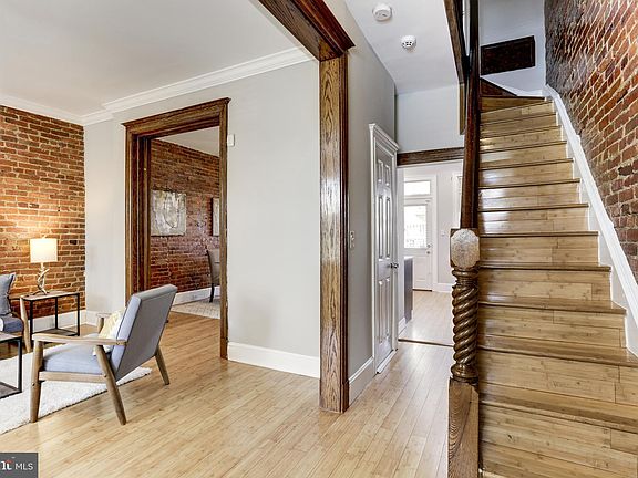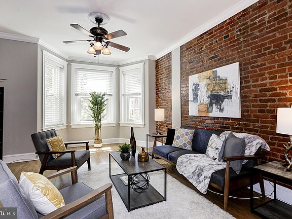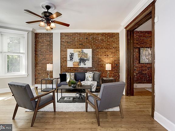 Charming Victorian row home with exposed brick and original pocket doors located on quiet street. Hardwoods throughout, newer kitchen with gas, granite and designated dining room. 3BR upstairs with 2-level rear deck, patio and 2 off street parking spots. Open au pair living on bsmt level - kitchen + full bath. Steps to Bloomingdale restaurants/services. KVS Title preferred.