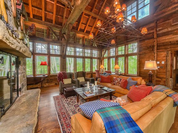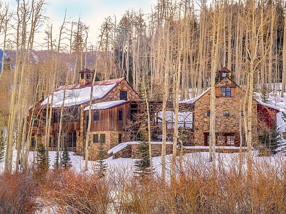 Located on the 15th tee of the golf course, this spectacular home was built by Chandler Homes and designed by One Architects. Use of reclaimed materials including barn wood, brick and Telluride Gold stone mix marry its rustic grandeur beautifully with its timeless elegance. Granite counters, marble baths, plaster walls, and custom designed lighting are but a few of the extraordinary design elements that grace this magnificent estate. An inspiring great room with 2-sided fireplace, family room with bar and wine cellar, and separate game room provide many entertaining spaces. The private master suite is complete with fireplace and two separate full baths. Two additional bedrooms, along with a bunk room, make this home perfect for extended family and friends. The home's view of the San Sophia and Mountain Village Golf Course is spectacular. Located at the end of a cul-de-sac, and bordered by the golf course and open space, the home's location is private yet accessible. Outdoor living spaces abound with a large patio and fire pit, and numerous decks and enclosed porches.