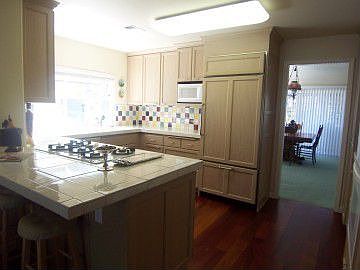 Exceptional w/cherry wood flooring, formal living room w/custom wood mantle & fireplace, family room, completely remodeled gourmet kitchen w custom designer cabinets w/roll out shelves & spice racks, custom tile counters, a grand master suite w/ views, remodeled tile bath, two additional spacious bedrooms & a huge custom walk in closet built to code and permitted, incredible storage & wine storage, two car garage best floor plan & great location.