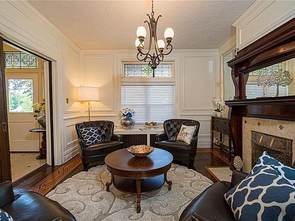 Experience sheer elegance with this timeless classic, showcasing only the finest details. This magnificent one-of-a-kind home is the true definition of sophisticated grace, boasting ornate stained-glass windows, original inlaid floors, and lavish trim and woodwork throughout. An upscale kitchen beckons you with its granite countertops and stainless steel appliances, and the built-in china cupboards add to the endless charm. The luxurious master bedroom with its spacious walk-in closet and en suite master bath leaves nothing to be desired. Bask in an original (newly refinished) claw foot tub, unwind in the finished basement, relax on the charming (brand new) front porch, or kick up your feet on the rear brick patio. If you're looking for unsurpassed attention to detail in a well maintained home overflowing with natural beauty, this home is for you--and with its convenience, ample off-street parking, and walk-able distance to the nearest bus stop, this home truly has it all!