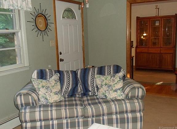 Enjoy living in this vinyl-sided ranch on just under one half acre. Formerly three bedrooms, but the third bedroom was converted to office. Possible to return to third bedrm. Eat-in kitchen has full-view doors which lead to two-tier deck and above ground pool. (new liner in pool and brand new filter). New roof June 2016. Lower level is not included in the square footage. Family room has electric heat, large "picture" window and new wall-to-wall carpeting. Laundry and workshop area are also in the lower level. This home is for those who want to have the convenience of close proximity to hwys, shopping , etc. yet like to be in a more private setting.