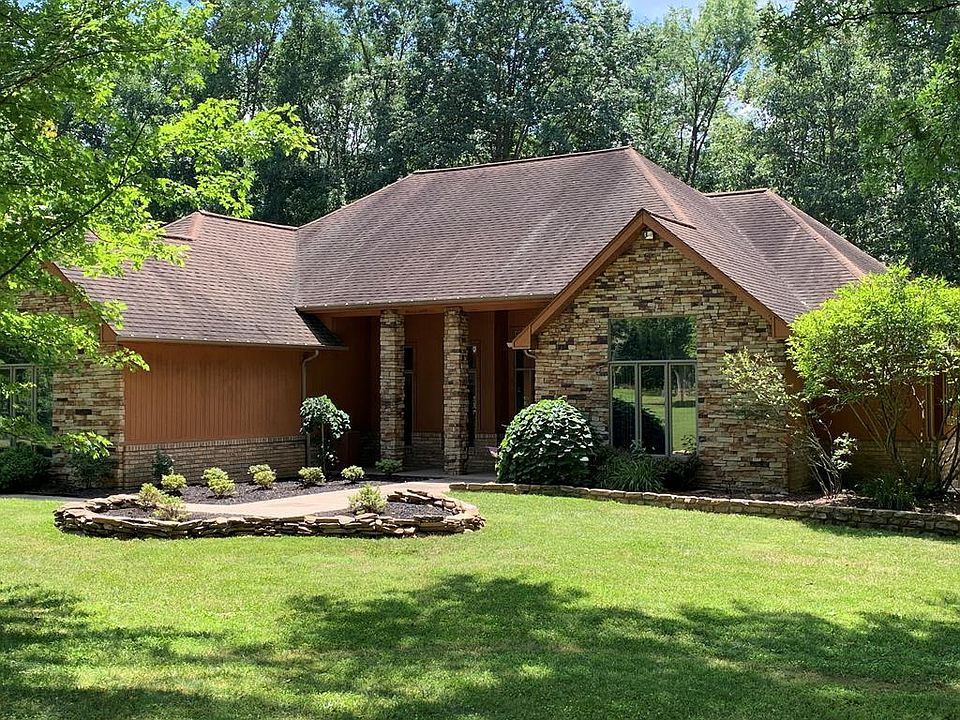 Spectacular home located on 7acres of ground located in beautiful Shawnee Hills. This home has a large eat in kitchen with fireplace, first floor laundry, first floor master bedroom, large rear patio with firepit, finished basement with bar and 4-5 car garage.