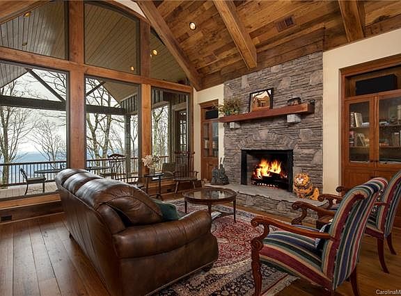 This luxurious mountain home was built with an appreciation of natural materials. Interior enhancements will catch your eye the moment you enter this cozy home with the amount of antique wormy chestnut used from the floor to the soaring wood ceilings. Three interior stacked stone fireplaces make a strong Architectural statement yet inviting and cozy for small or large family gatherings. The main level has everything needed for comfort while the upper & lower level expands the house for large gatherings. A chef's kitchen is open and offers all the facilities needed to create wonderful meals. The covered deck features a stone fireplace to warm you on a chilly night when enjoying the multiple mountain ranges and sunsets view. Tranquility and privacy will be yours in this private setting at the lofty elevation of 4700'. Balsam Mountain Preserve is a premier gated community offering a private Club for Members.