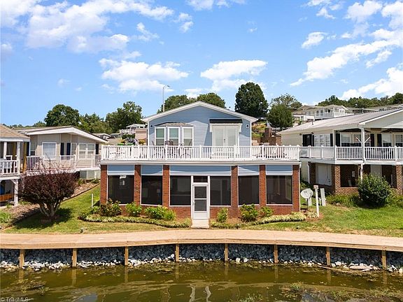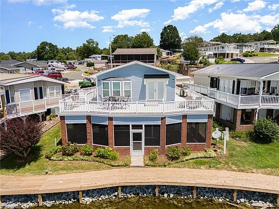 Badin Lake Waterfront Home...remodeled modular home located inside the gated waterfront community of Badin Shores Resort, Badin Lake. You will enjoy on the main level open concept kitchen, living, dining with amazing views of the water. 2 bedrooms and 1 bath are also located on the main level. The 2nd level offers another full bath, laundry area and storage. The lower level offers a large family room currently used as a billiard room with custom built-in cabinets (office space), gas log fireplace, wet bar, and a large closet for storage. This area could easily be converted into additional bedrooms if needed. You will enjoy the lower-level large screen porch that gives direct access to the waterfront boardwalk. Enjoy all the luxuries offered: heated tile floors in bathrooms, custom cabinetry, deep soaking tub, custom tile work, unique hardwood flooring, aluminum decking and much more.  Sellers are licensed NC Real Estate Agents. Come enjoy LAKE LIFE at Badin Lake.