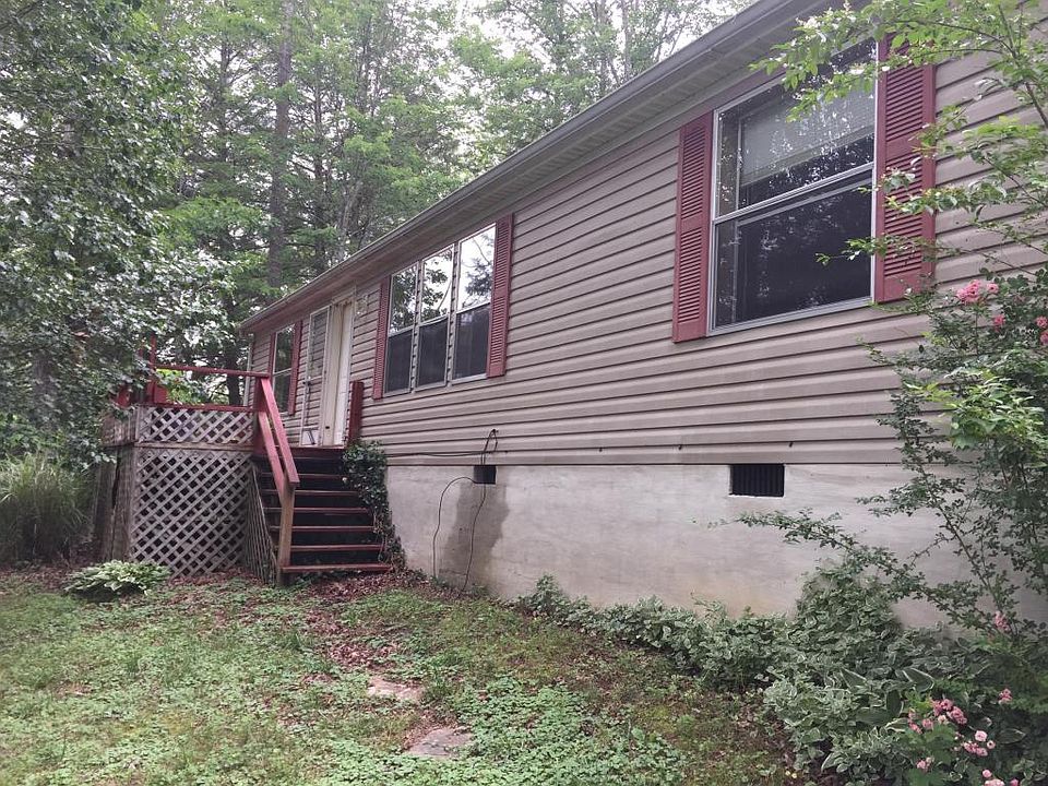 3 bedroom, 2 bath mobile home on a permanent foundation has split bedrooms, and an open kitchen & dining area. The home sits on 2.45 acres that offers privacy and a beautiful wooded view.