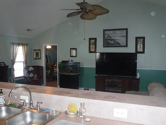 Pine Needles is a quaint community with very low HOA fees. The home has a new AC unit, hot water heater and appliances are less than 2 years old. The yard has an irrigation system, fencing, built in barbecue with many shade and palm trees. The kitchen is open to the living room and has upgraded LTV flooring. There are many fans, vaulted, trayed ceilings and a fireplace in the living room. Home has been pressure washed, termite bond through Grand Strand Termite and waiting for a new owner.