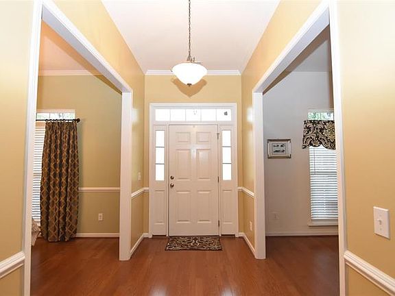 Beautiful home with a charming porch to greet your guests! Open floor plan, with two formals. Both have hardwood floors and dining room opens to great room with wood burning fireplace. Eat-in area in kitchen with bar, lots of cabinets, and pantry. Split floor plan with Master featuring a tray ceiling, private bath with separate shower and tub, double vanity and walk in closet. FROG for media room, office, play room, or guest room. Laundry room located right when you walk in from side entry garage. One of the best lots in the neighborhood with deck and privacy fenced back yard! See 3-D virtual tour to walk through this lovely home! Home qualifies for 100% USDA financing. Shown by appointment only.