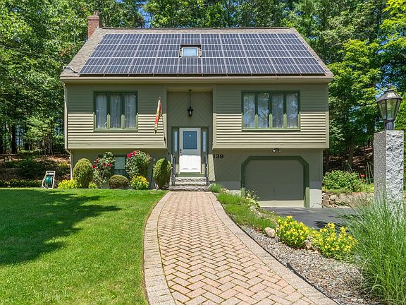 You are invited to view this well-maintained residence in Hudson, NH. Minutes from the Massachusetts border with easy access to route 3 and route 93, this home offers everything you need. The decor features cherry hardwood kitchen cabinets and Cambrian Quartz countertops, with gleaming hardwood floors and plush carpet in the bedrooms. There are 3 large bedrooms, with main bathroom access from the Primary bedroom, heated and cooled centrally with systems updated 3 years ago. This home has 4 bedrooms, 3 bathrooms, a 1-car garage under, and a heated 2-car detached garage. Systems include updated HVAC, newer AC and water heater, and radon mitigation. The landscaped grounds feature blooming plants and space for badminton or other outdoor fun! Delayed Showings by appointment start between 12-3 pm Sunday 7/6, Monday 7/7 and Thursday 7/10.