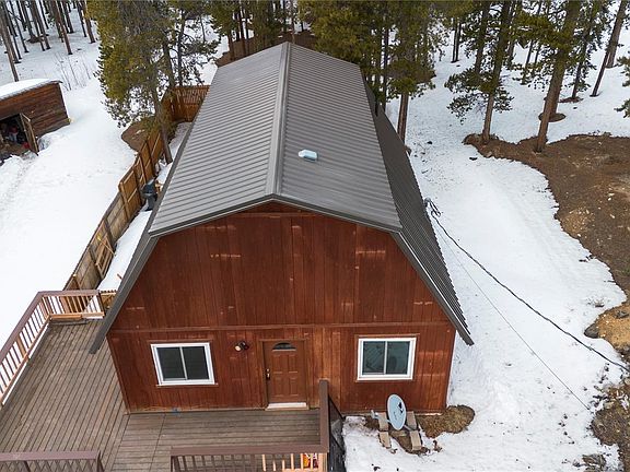 Cozy mountain home with fenced in yard / dog run. Composite deck with decking and trusses replaced in September. Workshop on property is great for lawn tools and extra storage. This property also features a metal roof and Andersen French doors to the deck. On the inside you will find an open concept great room with vaulted ceilings. The kitchen has tile granite counters as well as flooring, built in microwave, newer dish washer and newer garbage disposal. Custom cabinets with dovetailed drawers will make cooking enjoyable. The full bath with laundry hookups is located on the main level as well as the main bedroom. Upstairs you will find a good size 2nd bedroom. All windows and exterior doors are newer, and an on demand hot water heater and water filtration system has been installed in the last 4 months. The electrical panel has been replaced in the last 5 years.