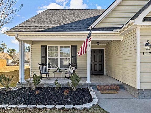 Come see this spacious 3 bedroom 2 bathroom home in the Lakeside at Royal Pines Subdivision. This 1356 square foot home has 2 car attached garage, fenced in back yard, and so much more. The living room is spacious and is open to the dining area and kitchen with a fire place and plenty of natural light. The primary suite is equipped with on-suite bathroom, and walk in closet, perfect for relaxation, and storage. New AC heat pump, updated flooring throughout the home, fresh paint, and so many other wonderful updates have been done to the property. This home is located just 15 minutes from MCAS Cherry Point and all that Havelock has to offer. Not to mention less than 25 minutes to Downtown New Bern!