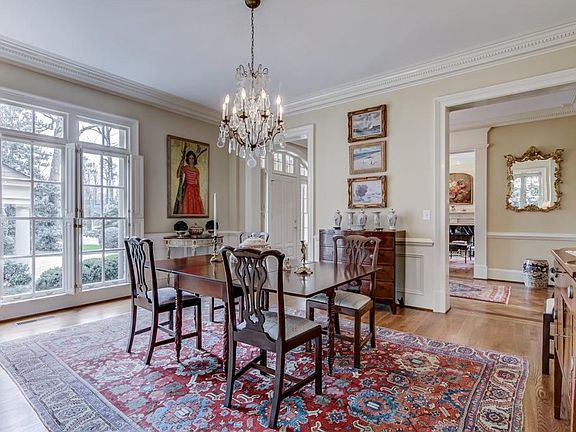 Charming home, built by James Cotton, w/impeccable finishes & details, sited on gorgeous flat lot. Spacious rooms & flowing floor plan are ideal for family living & entertaining. Family room w/coffered ceiling, fireplace, bookcases, & French doors opening to bluestone patio; kitchen w/breakfast room has bay window that looks out onto the back yard. Beautiful master w/fireplace, luxurious bath & walk-in closet; 3 additional bedrooms w/ensuite baths & walk-in closets; 5th bedroom/office over garage. Finished room on lower level could be exercise/media/den/playroom.