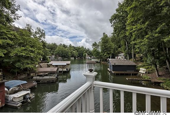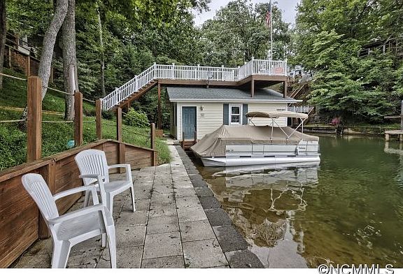 Lake Lure lakefront Cottage only 6 years old on quiet cove. Wood floors. Fireplace. Open Floor Plan. Full size lakeside screened porch. Cathedral ceilings with wood beams. Loft sleeping area plus 2 main level bedrooms. Newer Boathouse with sundeck and separate sitting area lakeside. Low maintenance Exterior Hardiplank. Low maintenance mature landscaping. Paved drive with additional gravel parking. Easy access to home and lake.