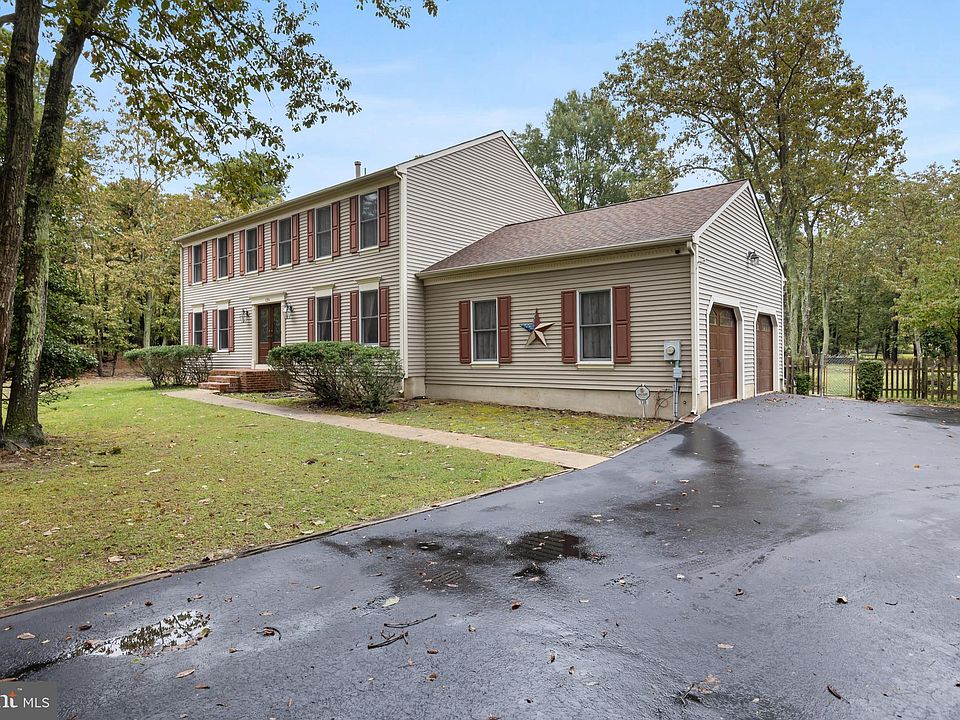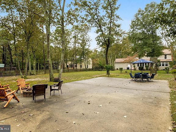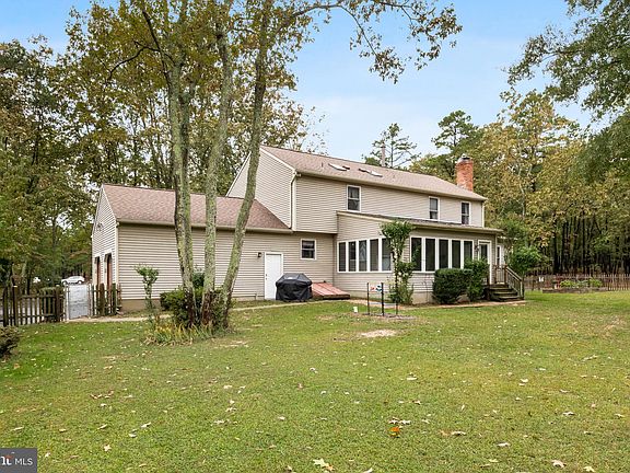 Welcome to your little piece of paradise , privately nestled in the trees, with a deep setback from the street and no neighbors to one side or behind you! What's even better is that it is only minutes from major highways, shopping, restaurants and Little Mill Golf Course. The long paved driveway leads you to this lovely and spacious home, with traditional styling and an updated interior perfect for today's family. Enjoy a party without the worry of bothering your neighbors, relax in quiet solitude as you enjoy the natural flora and fauna surrounding you, or enjoy family time dining and relaxing around the firepit into the late evening hours. You'll find peace of mind knowing that the roof and Vellux skylights were replaced in 2015, there is a new Pella front door, a new Andersen rear door and new garage doors. There's also a new water treatment system installed in the home. The interior of this home is suited to any lifestyle decor, from more traditional vibes, to the popular farmhouse style, or a more rustic country home style. Double front entry doors lead you to a home showcased by wide strip hardwood flooring that coordinates perfectly with the stained wood trims throughout. This center hall floor plan is sunlit and includes Living and Dining Rooms, an updated Kitchen with complementary painted cabinets, extended granite countertops for casual dining space, stainless steel appliances, a beautiful tiled backsplash and floor. there's a fireside Family Room just off the Kitchen and ceiling fans abound throughout the home. You'll be one with nature as you enjoy the huge Sunroom with a cedar ceiling, skylights and 3 walls of casement window for viewing the natural setting. This cozy room has lighted ceiling fans & neutral carpet for comfort and it would be the coziest place to watch the snow fall in the winter months. Baseboard heat keeps it nice and warm. You'll finish off the first floor with a large Powder Room and a Laundry with washer/dryer, laundry cabinet with sink and upper cabinet storage. A carpeted staircase leads to the upper hallway and carpeted bedrooms. Your owner's suite has a vaulted ceiling, tiled attached bath with step in soaking tub, stall shower and vanity with sink. The remaining 4 Bedrooms have ample closet space and share a well appointed main bath with tub/shower and dual vanity. You'll find lots of ways to use the flexible finished basement area. Here warm carpet & neutral walls create a blank canvas for you fill with good taste and imagination. This wonderful home is located in the highly rated Evesham Schools, near Little Mill Country Club, convenient to the shore points and Philadelphia.