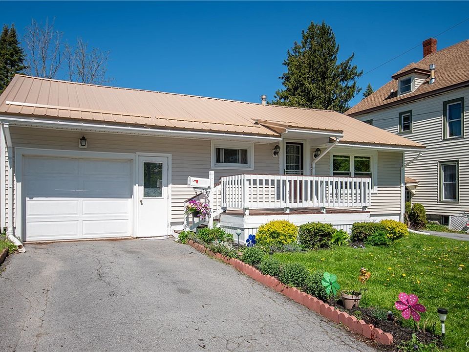 Affordable and adorable ranch home available now. Very inviting and easy to manuever on one floor. Current home owners have made many updates in just over two years. They added new siding and a new metal roof. Carpet was removed so the goreous original hardwood floors could be restored. Additional gripstrip plank floors installed in the kitchen and bathroom. Upgraded to a high efficiency furnace with central AC. Plus an attached one stall garage. Check out the lovely landscaping out front just in time for spring. And don't forget the spacious fenced in back yard with large black walnut trees, pear trees, a crabapple tree, white cedar along the back fence, blue grapes, trellised wild grapes, and a fun hops garden. This was once a two bedroom but one bedroom was converted to the dining area, but could easily be changed back. Close to famous dining like Arts Jug and Jeans Beans, near a shopping plaza, and walking distance to a playground and the elementary school. Thompson park also is very close by. This home is a must see!