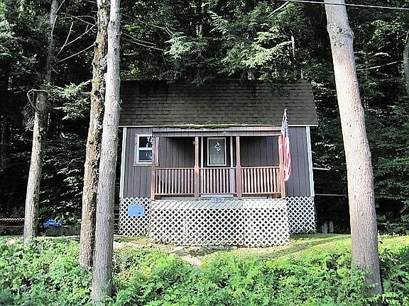 75 Feet of Lake Frontage on Cincinnatus Lake , with a 2 story cottage built in 2009 overlooking the waterfront. New Deck on the Shore with a boat launch dock. Cottage has Two rooms, one open room downstairs with a walkout to a small porch overlooking the lake and a second floor sleeping area capable of accommodating at least four beds. Propane Gas Fireplace for heat. Small bathroom with a toilet and sink. 500 gallon septic tank. 250 gallon rain water collection cube which provides water to the toilet and sink from the eaves. Great getaway spot for the outdoors man/hunter/ nature lover. Move in condition. Won't last !