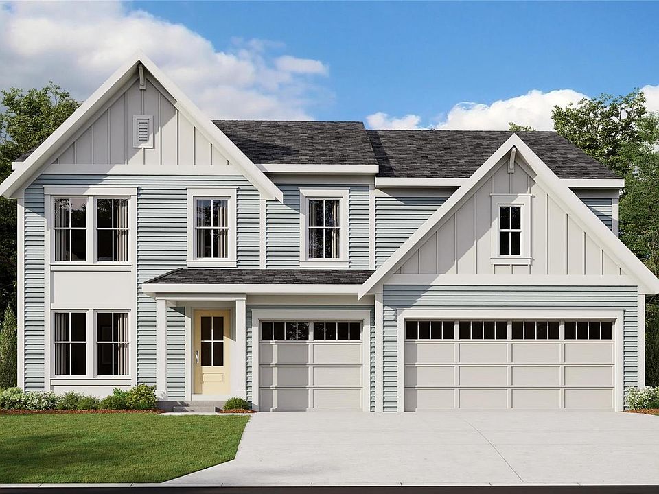 Gorgeous new Grandin Cambridge Cottage plan by Fischer Homes in beautiful Street of Caledonia featuring a private study with French doors. Open concept design with an island kitchen with stainless steel appliances, upgraded multi-height cabinetry with soft close hinges, quartz counters, pantry and walk-out morning room to the large patio and all open to the soaring 2 story family room with fireplace. Casual living room just off the kitchen could function as a formal dining room. Upstairs homeowners retreat with tray ceiling and an en suite that includes a double bowl vanity, separate walk-in shower, water closet and large walk-in closet. There are 3 additional bedrooms, a centrally located hall bathroom and convenient 2nd floor laundry room for easy laundry days. Full basement with full bath rough-in. 3 bay garage.
