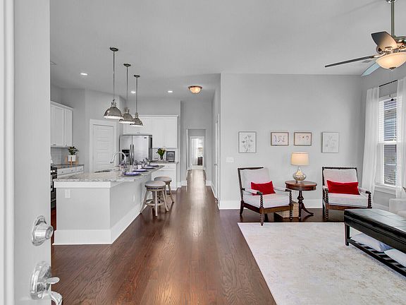 This Beautiful well maintainted move in ready home is located in the desired Nexton, Brighton Park Village. A fully covered front porch facing an amazing court yard greet you. With an open concept kitchen, dining and great room at the front of the home and a spacious Primary bedroom and primary bath located at the back of the home. Two additional generous sized bedrooms and a full guest bath. This home is the perfect layout for all, The 2 car detached garage is accessed from the alley.This home is near walking trails, an amazing pool area, restaurants and a new Harris Teeter which is opening soon.