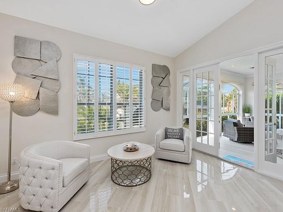 Beautifully remodeled Capri plan offering 3 bedrooms, 2 full baths, one half bath, one car attached garage, and a shower room on the first floor. The inviting, neutral color scheme is the perfect backdrop to personalize the property to your own style. The main floors are covered with a high grade, glossy porcelain tile. The staircase offers wood steps and wood railing stained to match. The spacious main suite offers a large bedroom, walk-in closet, free-standing tub, bidet, and walk-in shower; the shower is accented with pebble and porcelain tile. The guest bath also offers a walk in shower with pebble and porcelain tile. The powder bath has a vessel sink, white cabinets, and quartz counters. The well appointed kitchen has been equipped with Viking oven, cook top, and vent. The refrigerator is a Sub-Zero built in. A high efficiency, three zone air conditioning system was installed in 2021. The windows have a ceramic UV window tint. The property offers east and west exposure; beautiful sunsets can be enjoyed from almost every room in the property. Located in a pet friendly community located in the heart of Park Shore near fine dining, upscale retail, and beach.