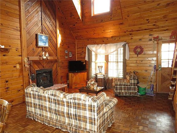 POSITIVELY UNIQUE TRUE LOG LAKE FRONT HOME! Upon entering the home you become mesmerized by the STUNNING wood work throughout! Wide angled boards surround the fireplace only to be complimented by the stone hearth, vaulted ceilings, wood stairs & railings, geometric mosaic paraquet flooring and plenty of windows that allow tons of natural light to showcase the gorgeous woodwork, all of which tip the scales on this one! The open floorplan & spacious covered deck allow for you to be part of the conversation while entertaining, each bedroom has a touch of wood to tie it all together, the lower level allows for extra space for family and friends! This home exudes warmth, coziness & it's positioned perfectly on a great lot that gradually takes you down to the lake! Your met with a 2 well concrete dock that has all the goodies AND lets not forget the 20x30 metal building w/concrete floor (on 1.5 acres) perfect for vehicles, toys, a workshop or ALL 3! THIS IS A REAL CHARMER WITH A KILLER VIEW!
