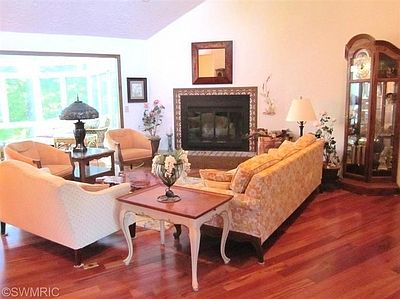For details and more pictures, call listing Agent: Steven Vollmar at 269 488-5331. Don't miss this gorgeous wooded setting overlooking Lake Doster Country Club! This beautiful finished walkout home with over 3,500 finished sq ft - 5 BD, 2.5 BA - will impress you with the stunning views from every room in the house. Entering the huge LR you are awed by the tall ceilings and all-glass conservatory overlooking the wooded lot and golf course with Brazilian Koa flooring and wood fireplace. The Kitchen has stone counters, stainless appliances and cooking island w/ wet bar that opens to another FR, gas-log fireplace and of course the beautiful views. The 2 Car Attached Garage enters a main floor laundry and 1/2 BA. The LR & FR opens to multi-level deck for outdoor enjoyment - overlooking a pond / waterfall in the back yard. On the walk-out level are 2 large BD's and a nicely finished rec-room with wood fireplace, pool table and screened porch. The whole property is beautifully landscaped with flowering trees and shrubs. Easy access for G. Rapids, Kazoo, B. Creek & Richland.