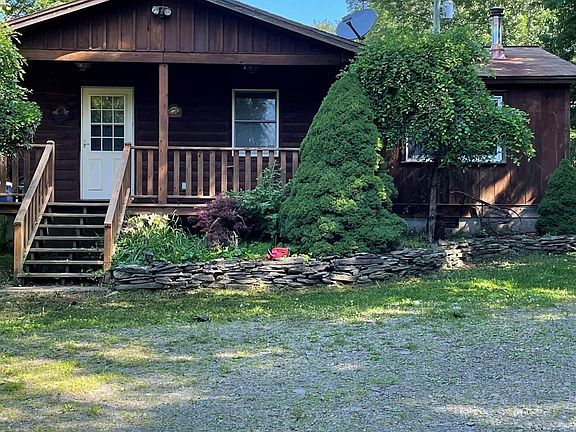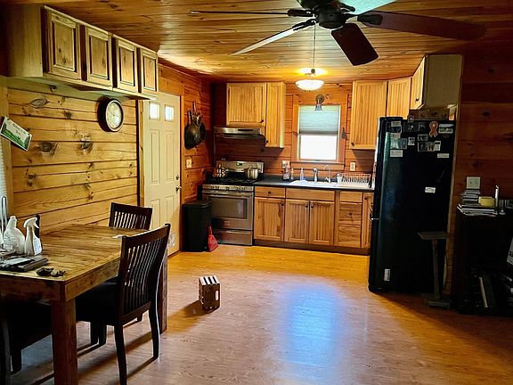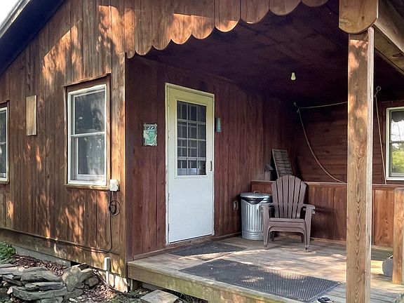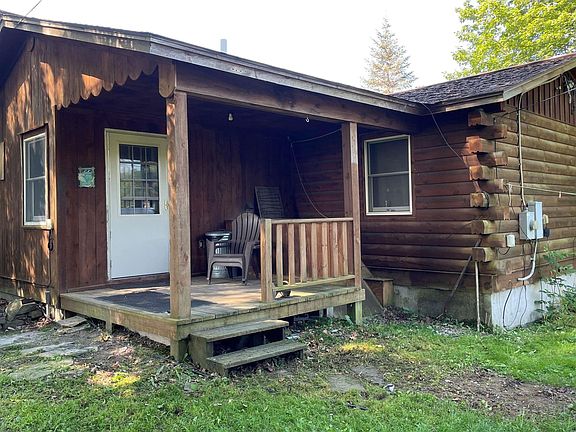 This two-bedroom log cabin sits on 13.6 beautiful acres. The home has a front and back porch, an open kitchen/living room, 1 full bathroom and a laundry room. There is a partial basement with outside access. The property has a large barn with six stalls and a loft. There is a shed and chicken coop on the premises as well.