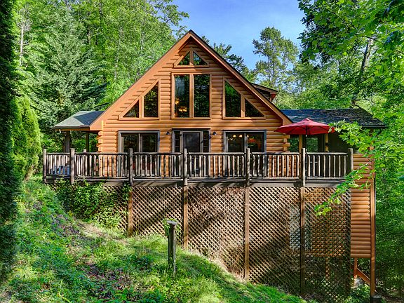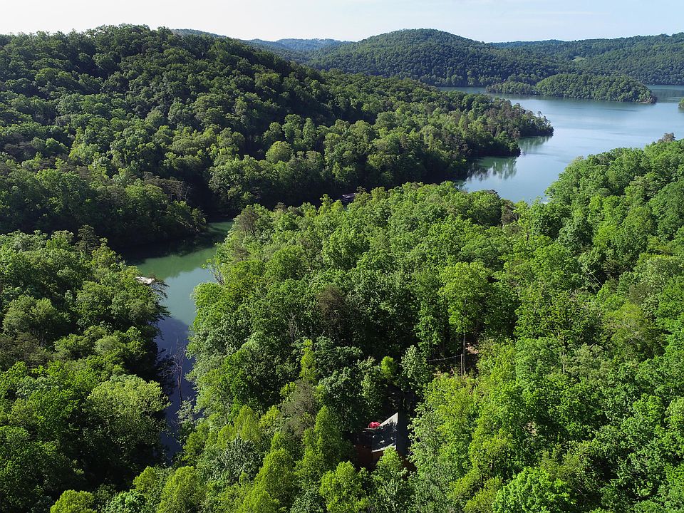 Charming lake front log home with plenty of space for family and friends to enjoy gorgeous Norris Lake. This well-maintained cabin on 2.43 acres provides privacy and easy access to the lake with its own dock. High ceilings and glass throughout create a sun-drenched open living space on the main level...two bedrooms also on main floor. Master suite upstairs with private bath and walk-in closet. Listen to the creek from your outside deck, and entertain on the screened-in porch with grilling and a wood burning fireplace for s'mores on a cool night. Centrally located on the lake, enjoy easy access to three restaurants (Hickory Star, Bubba Brews, Waterside floating restaurant) with entertainment and food. to enjoy. This is a great opportunity to own a lakefront home at a reasonable price.