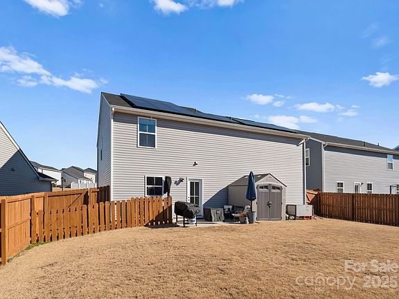 $5,000 SELLER CREDIT to go towards Closing Costs or Rate Buy Down. Open the door to this beautiful open floor plan in Weathers Creek, Troutman's sought after community! You can't beat this location within walking distance to future restaurants and the grocery store. This is better than new construction as the seller has made numerous additions to complete the look and functionality of the home including cabinets in the laundry, lighting, and a shed out back. On the upper level are 3 bedrooms sharing a full bath, laundry, as well as a wide open primary suite boasting a nice sized dual vanity. This house is a entertainers dream not to mention the paver patio and fenced yard for hosting and enjoying the wonderful NC weather! This home is equipped with solar panels which nearly eliminate the power bill at their current usage.