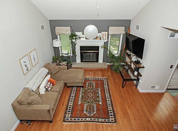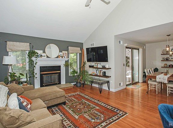 Conveniently located just off of Rt 23, this updated and cozy end-unit townhouse is move-in ready! Step inside and be welcomed by a gorgeous living room with high ceilings and gleaming wood floors! The wood floors continue into the dining room, where sliding glass doors invite you onto the private patio, supplemented with an adjacent patio. The modern eat-in kitchen boasts plenty of storage and counter space and an updated stainless steel range and microwave. Upstairs there are two generously sized bedrooms and a beautifully updated full bath. The large master bedroom boasts a private full bath. Don't miss this beautiful and comfortable townhome just steps from Rt 23 and close to shops and restaurants.