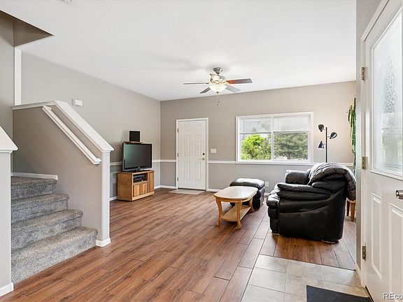 End unit in Carriage Village located on a quiet cul de sac. This unit has been freshly painted with a neutral grey color and is move in ready. As you stroll down the walkway or are relaxing on the covered front patio you will enjoy the beautiful roses in full bloom. The updated gourmet kitchen features a center island, siltstone countertops, 42 inch light wood cabinets and stainless appliances. There are 3 bedrooms upstairs along with the laundry area. The master bedroom boasts tile flooring, tray ceilings with ceiling fan and a 5 piece bathroom with Jacuzzi soaking tub. Modern features include interior white six panel doors with lever handles, newer hot water heater and new Aurora Snow quartz vanity tops for the master bathroom and upstairs hall bath. Close proximity to 6th Avenue and Belmar Shopping Area.