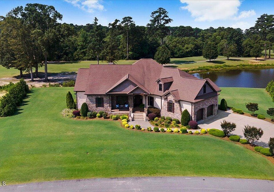 Welcome to 139 Duval Drive, a custom built home located on hole #15 at Lane Tree Golf Course. This beautiful property is situated on a double lot and offers 4204 square feet of living space, with four bedrooms and 3.5 bathrooms. The spacious kitchen features high-level granite countertops, a large island, tiled backsplash and maple wood custom cabinets. The living room has a cozy fireplace, coffered ceilings and built-ins, as well as stunning views of the golf course. There are two spare bedrooms downstairs that share a Jack and Jill full bath. In addition, there is an office with built-in cabinetry and a flexible room. A mudroom provides convenience for family life. The primary bedroom has beautiful trey ceilings and overlooks the pond and golf course. It also includes a walk-in shower with dual shower heads, dual vanities for his and hers, and a large walk-in closet. Upstairs you have two large rooms that can be used as bedrooms or bonus/flex space. Currently used as a home gym and offices. Outside, the yard has been meticulously maintained with an irrigation system in place. You can relax on the covered back patio with its own fireplace or enjoy outdoor grilling in the designated area. This property is perfect for those who love to entertain or simply enjoy the outdoors in peace and quiet. With its convenient location near the golf course, it's ideal for any family looking for their dream home!