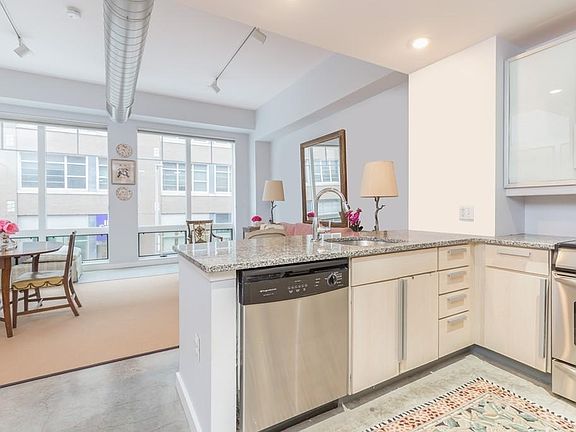 Welcome home to Dover Lofts in the South End. The open layout is great for entertaining. The granite stainless kitchen with gas cooking and breakfast bar overlooks the living/dining area with 10' high ceilings and a wall of windows allowing light to stream in. Great sized bedroom with Juliet balcony and another wall of windows. Working from home these days? The second bedroom is bright and would make a great home office, nursery or second bedroom with a twin or daybed. In unit laundry & excellent closet space throughout as well as a common roof deck with direct elevator access to the roof. This boutique condo building is located close to Whole Foods, great South End restaurants, galleries and SOWA open farmers market. Dover Lofts is pet friendly and professionally managed. Convenient rental parking available at Gateway Terrace. Also a commuter's dream location with easy access to 90, 93, the Broadway Red Line T stop the Silver line for easy access to all areas of the city and beyond.
