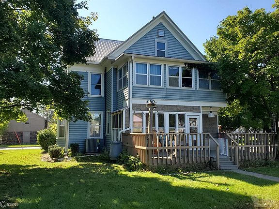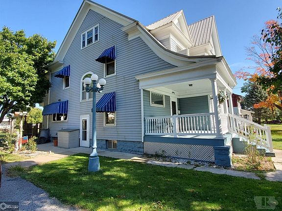 Gorgeous 4 bedroom, 3 bathroom Victorian home boasts ample space with over an acre in town! As you walk up to the front of the house, notice the new porch rebuilt in 2016. Walk through the front door into the welcoming foyer observing the Tiger stripped maple woodwork and Functioning pocket doors. Here you can welcome guests in to enjoy a warm fire in the Livingroom, a bountiful harvest in the formal dining room, or a warm cup of coffee in the kitchen. Abundant cabinets and counterspace provide ease for preparing large meals. Head downstairs for a more private feel in the finished office space with access to the side entrance. Ready for bed? Upstairs you will find 3 large bedrooms with the 4th bedroom being a bit smaller but containing entrance to its own 3 season room! A three-season room also adorns the main floor just outside the kitchen. Venture outside to find a spacious deck and patio with a sidewalk leading to the shop and garage both supplied with electricity.
