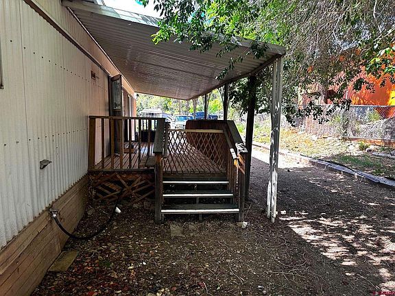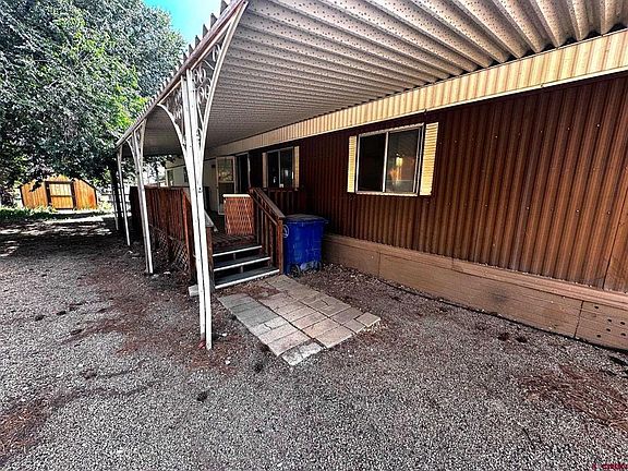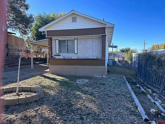 This manufactured home in Mancos is a 14'x70' 1977 model. It has a newer A/C installed. The home has a pitched roof installed. The home appears to be in good condition. The owner is in the process of cleaning it up. It looks rough but should clean up well. There are a couple of sheds included. It is doubtful that the foundation is FHA approved. The covered porch is a great addition. The home is priced to sell. Schedule a showing now.