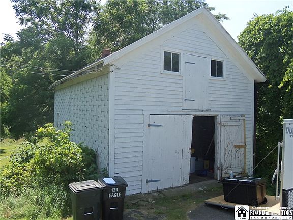 Solid two story home on huge 14 acre village lot ( 3 parcels ). Home is estimated at 1850 sq ft ( public records shows 921 which is incorrect ), with 4-5 bedrooms, 2 baths, large eat-in kitchen, formal dining room (if you choose) and several add'l. multi purpose rooms. There is a full attic with pull down stairs and a full basement with exterior stairway. Also an small enclosed side porch and a covered rear porch which looks out over the huge lower level rear yard and wooded area. Once on the lower level, there are several paths through the wooded area leading back to a very scenic setting on Canadaway creek. The two story barn/garage is perfect for storage or a workshop. Current owner has parked a car in it as well. Home has some updates including a newer roof (5 yrs), some new vinyl windows, updated baths, blown in insulation, and a 200 amp electric service. There are add'l new windows, some drywall, flooring, etc. which the seller will leave for the new owner. This is a home requiring work to put it back to it's glory days but it has so much to offer it's worth it! Taxes shown reflect all 3 parcels total.