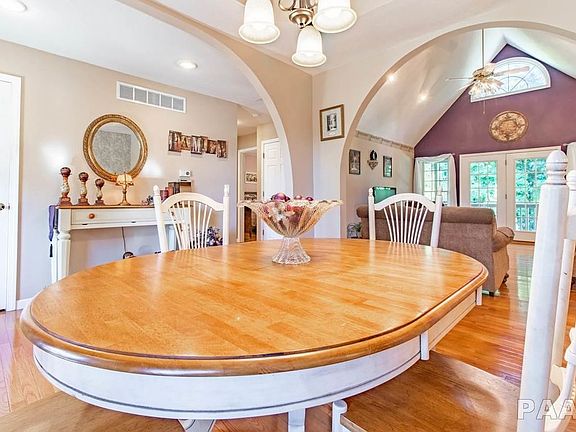 Immaculate 4 bedroom, 3 bath ranch home situated on a beautiful half acre wooded lot. Spacious interior featuring vaulted & tray ceilings, arched doorways; hardwood flooring throughout. Fabulous hickory kitchen looks out to private back yard. Split bedrooms layout, L-shaped master suite w/sitting area & walk-in closet. Main floor laundry. Finished walkout basement has bedroom, full bath, family room & kitchenette area. Huge 24x24 storage room under garage. You'll love the view from back patio decks. 12x16 rear "man cave" or "she shed" with knotty pine, vaulted ceiling & loft. L-Shaped master measures 15x11 & 17x7. Appliances sold "as is". Patio is wired for a hot tub. Make your appointment today!