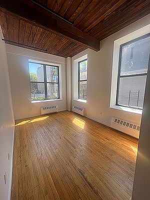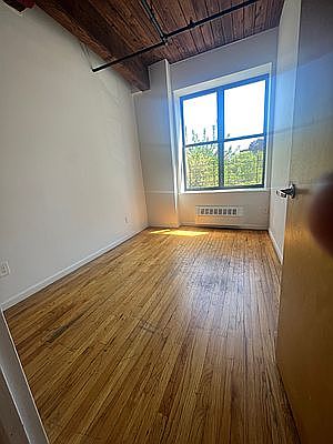Rarely available spacious 2 bed 1 bath with exposed wood timber beams and exposed wood ceilings! Apt 203 is a corner unit in this gorgeous loft building with elevator, laundry and parking! (for additonal w short waitlist) This 2 bed has enourmous closets, separate renovated stainless steel kitchen full sized appliances, separate x- large dining area or home office. Amazing light w open view s treetops. Ready May 20th and easy to view, easy to be approved! Gorgeous Clinton Hill, Quiet block near Classon G, live in super, cats ok, *no dogs*. Includes heat, hot water and cooking gas in the rent! Smoking allowed:No