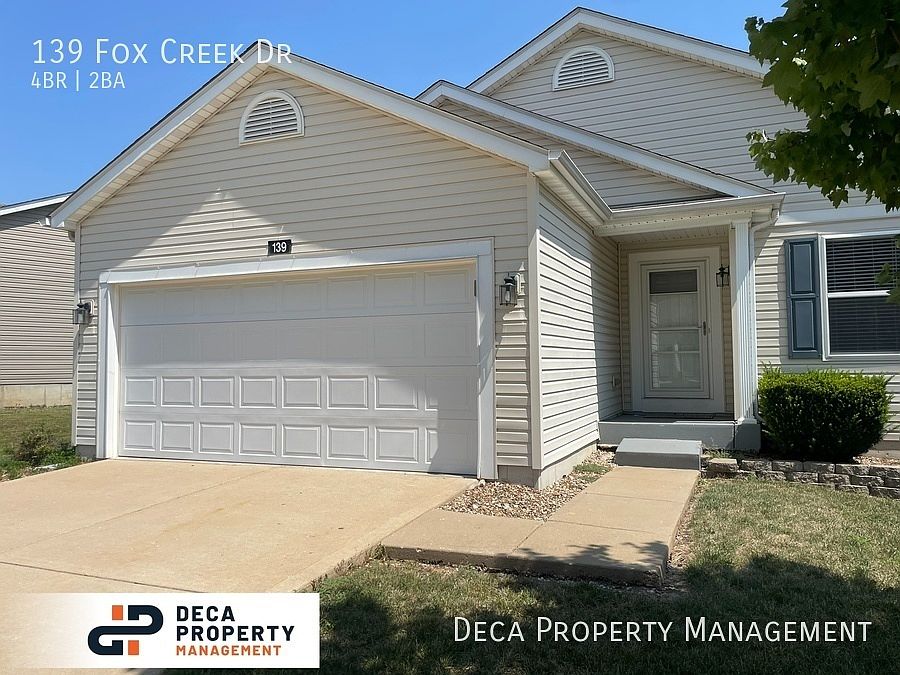 *LOWER YOUR MOVE IN COST WITH OUR NO DEPOSIT OPTION THROUGH JETTY - See Helpful Resources Below For More Information! *MOVE-IN* SPECIAL:$500 off Rent if Moved in on 9/23/2024 Ranch style 4-bedroom 2-bathroom home located in the neighborhoods of Wentzville! All bedrooms have ample space for various bed sizes and great closet space for storage. The kitchen is updated with hardwood cabinetry and black appliances! Two bathrooms, one located off the hall and the next dedicated to the primary bedroom. Enjoy summer weather in the fenced in backyard on the large deck. Home is located in the Wentzville School District. Schedule a showing today! Bedrooms:4 Bathrooms:2 Rooms:6 SQ. FT.:1,805 Occupancy Limit:7 Flooring: Carpet and LVP Utilities: Electric, Gas, Sewer, Trash, Water, Lawncare and Snow Removal Basement: Unfinished Laundry: Hookups in Unit Pets: Allowed - See Pet Policy (link below under Helpful Resources) School District: Wentzville Section 8: Not Accepted Security Deposit: $2,395 Application Fee: $60 per adult application Resident Benefit Package: $45.95 Monthly Charge (see details below) Property Manager: JL DISCLOSURES: This property may require a municipal inspection which may affect when it is available for move-in. There may already be applications submitted for this property at the time you submit your application. We cannot guarantee any unit, although it may be available at the time your application is submitted. Units are rented to the best-qualified applicant (not based on the order received) with the full security deposit paid. A security deposit will not be accepted until the rental application is approved All Deca Property Management residents are enrolled in the Resident Benefits Package (RBP) for $45.95/month which includes renters insurance, HVAC air filter delivery (for applicable properties), credit building to help boost your credit score with timely rent payments, $1M Identity Protection, move-in concierge service making utility connection and home service setup a breeze during your move-in, our best-in-class resident rewards program, and much more! More details upon qualified application. HELPFUL RESOURCES (copy and paste links into browser):