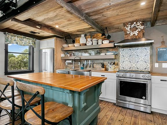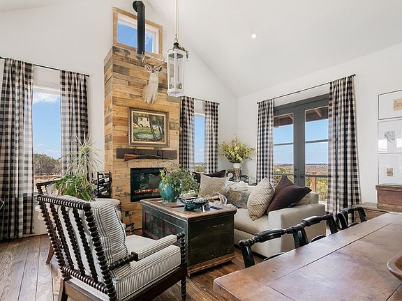 Welcome to your Hill Country retreat! This property offers coveted deeded easement access to a swimming hole on Turtle creek! Charming two-bedroom, two-bath home (+ loft) on over 5 acres near Kerrville. Blending rustic charm with modern features. The vaulted ceiling and stunning fireplace perfectly frame an open-concept kitchen & living area creating a spacious & inviting atmosphere. The kitchen features modern appliances, an island, & a fun tile backsplash. The loft above the kitchen offers additional living space, perfect for a guest room or home office. An adorable study with stunning rock walls and built in bookshelves provide a serene space for work or relaxation. Set atop a hill, the home offers breathtaking, panoramic views of rolling hills and vibrant sunsets. The style marries traditional Hill Country charm with a touch of country chic, creating a timeless and unique residence. Wood floors throughout, spacious laundry room with built in cabinets & room for an additonal refrigerator. Ideal for a full-time residence or weekend getaway, this property offers a perfect escape from the hustle and bustle of everyday life.
