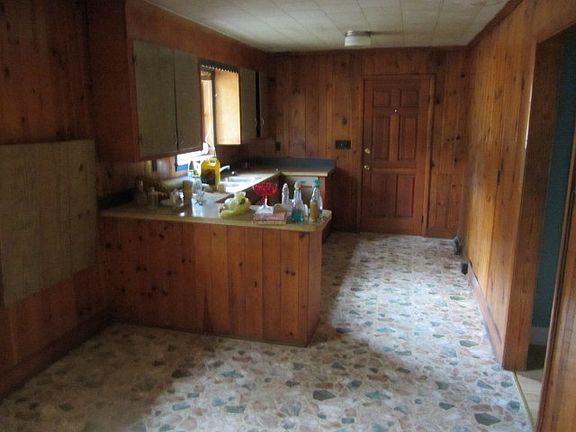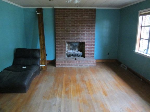 This brick ranch house has nice hardwood floors and a good floor plan. It has an oil furnace and a central air unit. The house needs a good bit of TLC and is being sold AS-IS. There is a screened-in porch beside the one car carport and the washer, dryer connections are in the back of this room. Kitchen has no appliances and there is knotty pine siding in the kitchen and dining area. Lockbox is on front door but be EXTREMELY CAREFUL ON THE HANDICAP RAMP. It has a hole in one spot and is very weak except on the edges.