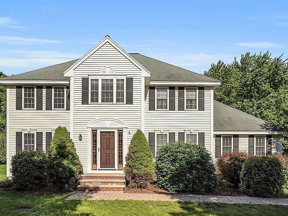 Beautiful center entrance 4 bedroom, 2.5 bath Colonial with a great floor plan in a convenient location. Welcoming entry foyer adjacent to the formal living room and dining room with decorative moldings and interior wood shutters. Large eat-in kitchen with stainless steel appliances, plenty of counter and storage space, with access to the rear deck for easy year round grilling! Spacious family room with vaulted ceiling and gas fireplace, opens to the kitchen making entertaining a crowd easy! Convenient half bath with laundry is located on the 1st floor. The second floor offers a primary bedroom suite with walk-in closet and full bath with double vanity. Three additional bedrooms and a full bath in the hall with large vanity. The lower level has a finished mud room and plenty of storage space. Rear yard offers a large deck with hot tub, paver patio w/ Pergola and a fire pit. 2 car garage and exterior outlet for a portable generator. Add your personal touches to make this home yours!