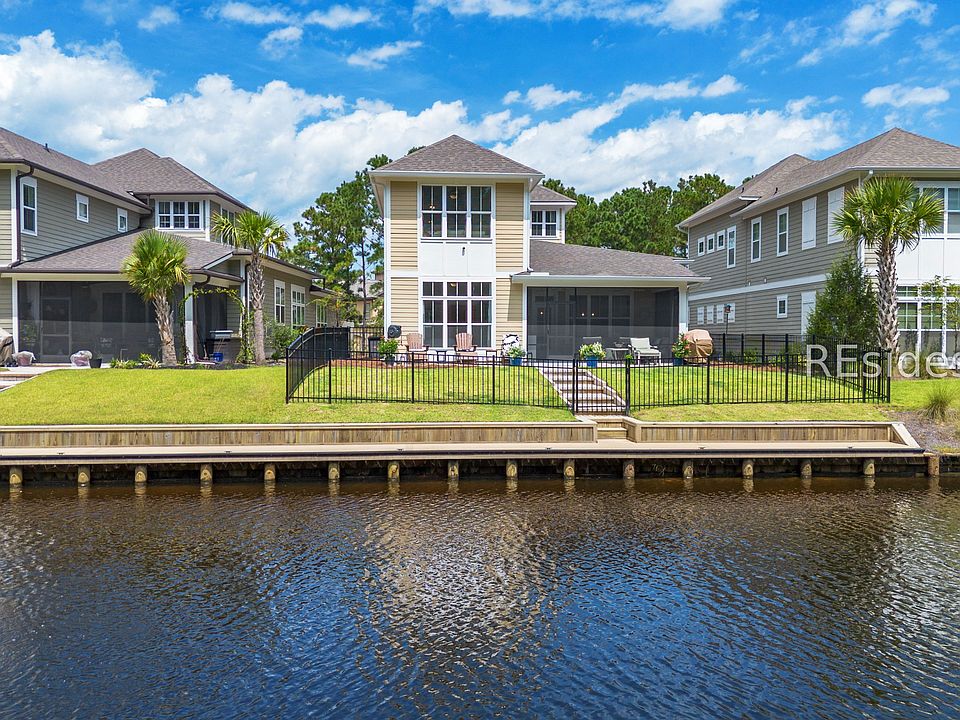 Welcome to 139 Hampton Lake Crossing - the best lakeside value in Hampton Lake! This exceptional home includes its very own private dock with boat tie-up, offering the rare opportunity to live directly on the water and enjoy endless lake adventures just steps from your backyard. Overlooking the sparkling waters of Hampton Lake and a protected nature preserve, this property delivers unmatched serenity and a true Lowcountry lifestyle. Inside, the home impresses with custom kitchen cabinetry, built-in organization throughout, custom closets for effortless living and floored attic space above the garage for ample storage. The open-concept design creates a bright, inviting flow perfect for entertaining or relaxing, while a whole-home water filtration system adds everyday comfort. Outdoors, the expanded paver patio and fenced backyard are designed for waterfront enjoyment - morning coffee, sunset cocktails, or launching a kayak or boat from your private dock. Residents of Hampton Lake enjoy resort-style amenities including pools, boating, fishing, fitness center, spa, tennis, pickleball, and lakeside dining at Backwater Bill's. With its luxury finishes, thoughtful upgrades, and peaceful preserve views, 139 Hampton Lake Crossing is the ultimate Lowcountry retreat - and a rare chance to own one of the community's finest lakeside homes.