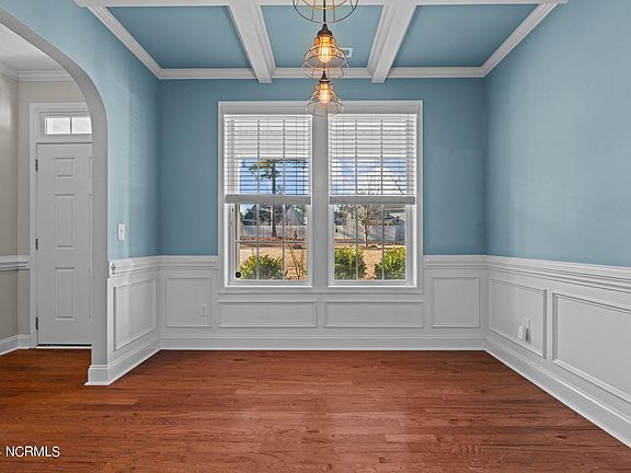 The heart of the home is the well-appointed kitchen, featuring modern appliances, ample counter space, and a convenient breakfast bar. The adjacent dining area seamlessly flows from the kitchen.