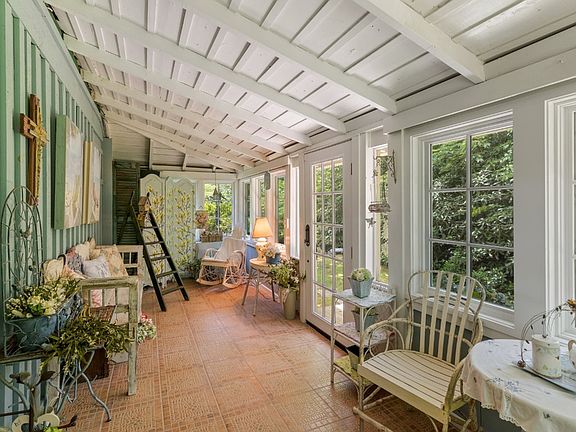 Charming Classic Cashiers Cottage with Guest House, Gardens, and Timeless Appeal! This isn’t your typical home - it’s got soul, style, and a little bit of that mountain magic! In a storybook setting just minutes from the heart of Cashiers, this classic cottage full of charm, character, and good energy comes partially furnished with a private guest house on 5 acres. Its painted rough-sawn siding in a cheerful robin’s egg blue makes it feel like a place where memories are made. Vintage style meets everyday comfort inside, where this one-level home welcomes you with original wood floors, wood-paneled & shiplap walls, stained glass accents, and a cozy layout of character-filled rooms. Thoughtful touches throughout give the home an inviting and relaxed style. Through the front door, you enter the light-filled Carolina room with new casement windows to let in the mountain breeze. Transition into the living room space, to find a stone, wood-burning fireplace as the centerpiece. On a private wing, you access the primary bedroom suite with a private bathroom and walk-in closet. Sliding glass doors open to the covered porch, which is perfect for al fresco dinners or lazy afternoons. On the other wing are 2 guest bedrooms and a shared hallway bathroom. The living room leads to the dining room, featuring a freestanding gas stove with stone accents. The dining space segues to the kitchen where you find countertop seating, a Viking gas range, and tons of storage & prep space. The guest house and she-shed truly make this property unique, offering space for visitors and a little extra privacy. The guest house has a living room, bedroom, and large full bathroom, plus a kitchen and laundry room, both with all new appliances. It’s a perfect setup for your guests or even as a vacation rental. The large she-shed can easily become an artist’s studio, potting shed, office, or yoga space. Step into the lush garden spaces offering winding paths, blooming beds, plus extensive flat grassy back and side lawn areas for lawn games. There are quiet corners for unwinding on the tiled patio or hosting get-togethers around the fire pit, toasting s’mores. This property is warm, welcoming, and offers enough nature for you to feel you’re away from it all. Whether you're looking for a weekend getaway, full-time home, or an investment property with personality, this one’s definitely worth a visit. Showings are by appointment only. Come see what makes this cottage so special and so easy to love!