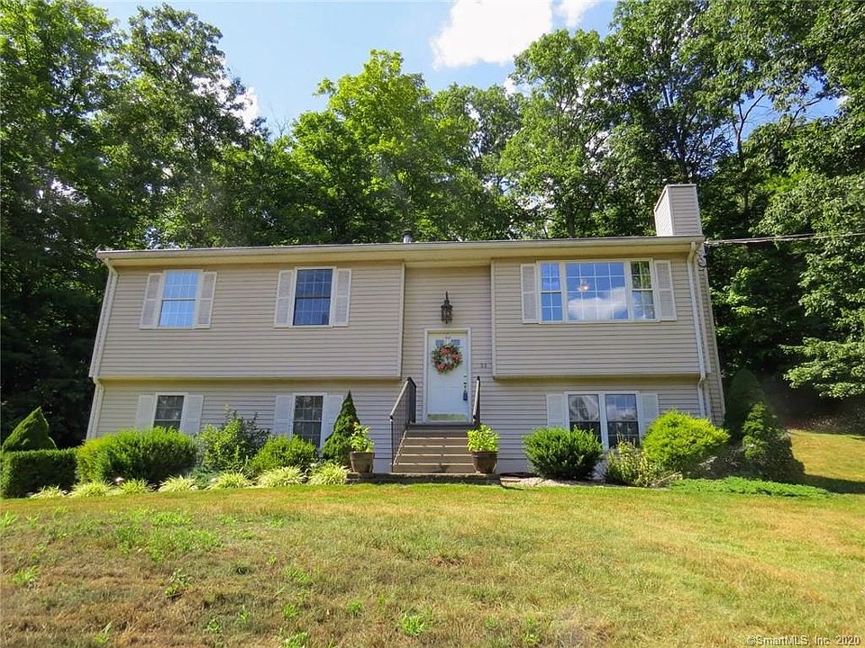 This fabulous updated home is set on 2.87 acres and situated up and away from the road. If you're yearning for a convenient location and a private oasis - look no further. This home has so many recent updates throughout. The kitchen boasts quartz counters, subway tile backsplash, stainless steel appliances and an abundance of kitchen cabinets. The best part is that open feeling with cathedral ceiling, extra large dining area which naturally flows into the living room. The living room also features a fireplace with a pewter insert. A large picture window gives you sunlight and a view of your very private lot. The Master Bedroom features a new bathroom with a stunning tiled shower. Two other bedrooms and a full bathroom complete this floor. The lower level includes an oversized 2 car garage which leads into the newly remodeled family room. You'll love the hardwood floors, half bathroom, and washer/dryer area. Other special features include central airconditioning, irrigation, and a firepit. When you do want to leave your home for fun and relaxation, head to the "residents only" pristine Lake Terramuggus for swimming or a picnic. Thie commute to Hartford is only 18 minutes. Rt 2 is less than 2 minutes away and Uconn is a 27-minute ride. Don't wait, this one won't last at this price