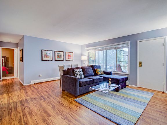Beautiful and extra large condo that is ready to move in, Heat is included. Walk to shopping, entertainment, and park. Beautiful finishes throughout. Open concept floor plan kitchen, dining, living room and extra sitting area that could also be used as a dinette. New wood floors and blinds in living room, new stove, kitchen hardware and granite counters, newly painted interior. Enjoy the park like quiet setting. Includes indoor and outdoor parking space,and extra parking