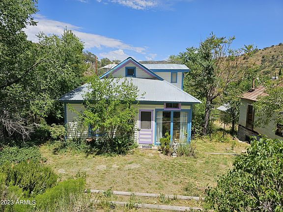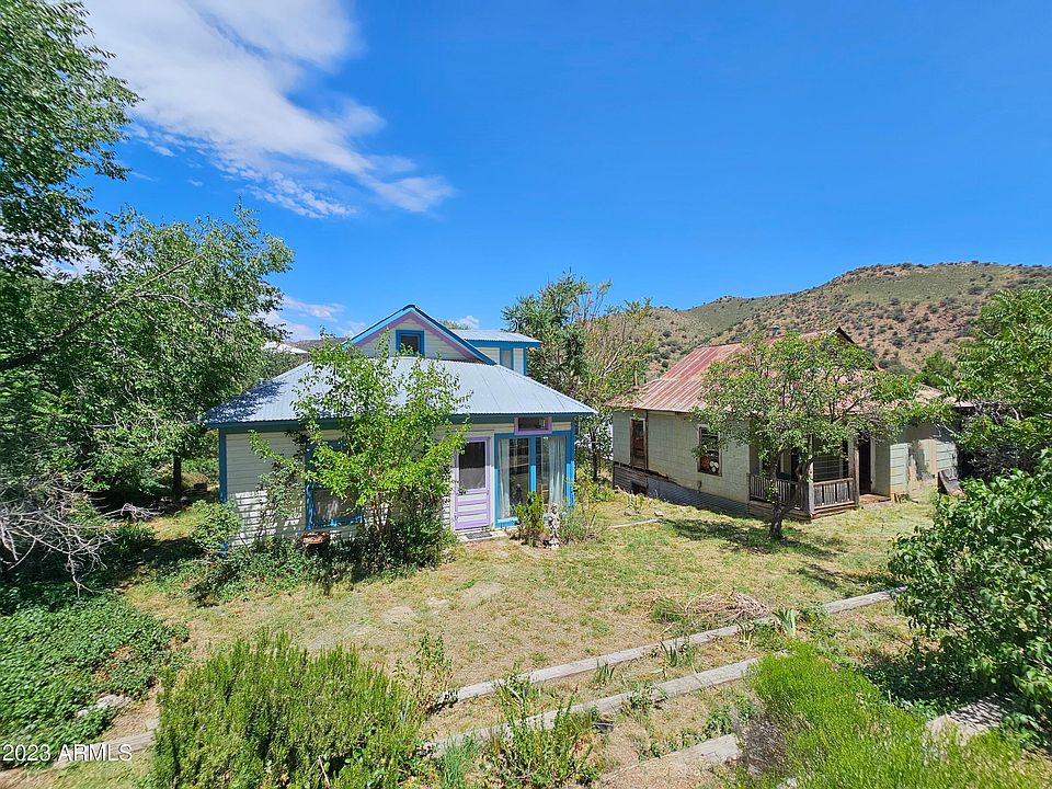 Three Structures on Hillside in Old Bisbee: 137 and 139 Higgins Hill Includes 975+ sq ft Bungalow, 2 Bedroom/1.5 Bath, and 400+ sq ft. and Garage/Workshop (floor is plumbed for radiant heat), and 673 sq ft Fixer-Up Bungalow (used for Studio/Workshop/Storage - could be restored for living space). On Four Parcels of Land Totalling .4 Acre. Property reaches from Higgins Hill to Quarry Canyon (and can be reached from either street). With great mountain views, mature trees, fruit trees, and rosebushes.