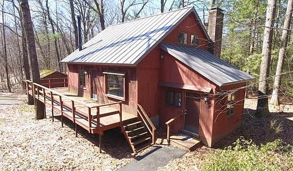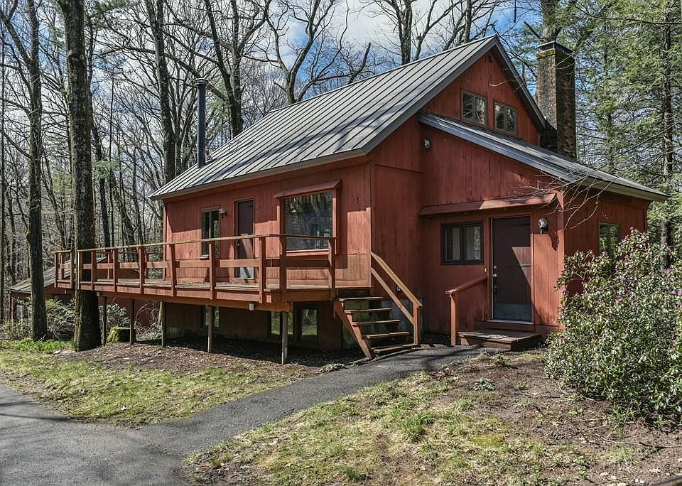 Enjoy the special surroundings of this Post and Beam Contemporary! Tucked on a partially wooded lot, this is the perfect balance of country setting and proximity, only a short drive to Amherst Center, UMass and area shopping. The spacious open floor plan includes Cathedral ceilings and a cozy living area with wood stove, window seat and rustic charm, enjoys ample sunlight through the slider and picture windows. Open concept kitchen and dining room, full bath on the first level. The second level with loft study, bedroom with half bath. The lower level has three bedroom, full bath and laundry. The large wrap around deck is ideal for outdoor entertaining or enjoying the private surroundings. A well maintained home with newer metal roof, freshly painted interior and deck and two car garage. The nearby scenic reservoir and conservation area is an added bonus!