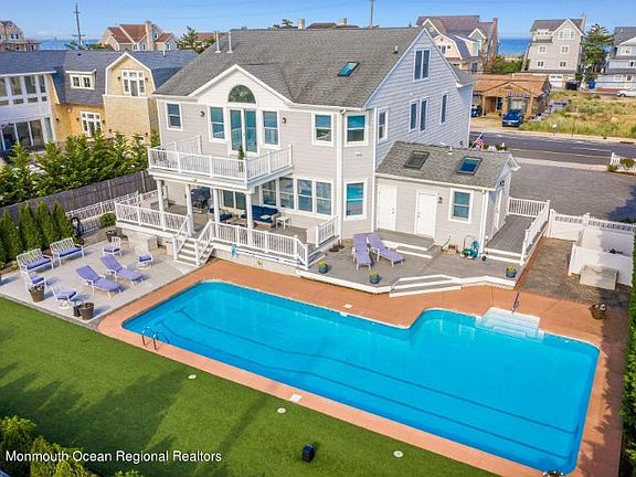 When relaxation and family fun are in order.A rare offering on the border of Mantoloking on an oversized lot 88x139 your own resort styled 4000 +sq ft home. Waterviews of both bay and ocean. This home was designed for entertaining and relaxation. Enjoy the private backyard featuring a large pool patio& porch. From the moment you enter this home w open floorplan9ft+ ceilings, so much natural light and large rooms you feel at ease. The living room w wet bar and fireplace overlooks the backyard oasis. Flowing into the kitchen and dining room. The second floor w 4 well appointed spacious bedrooms including a grand master suite w 2 walk in closets and spa like master bath. The 3rd floor has an lovely siting room and guest room w its own bath. Enjoy the exercise room w sauna. There is even a putting gre